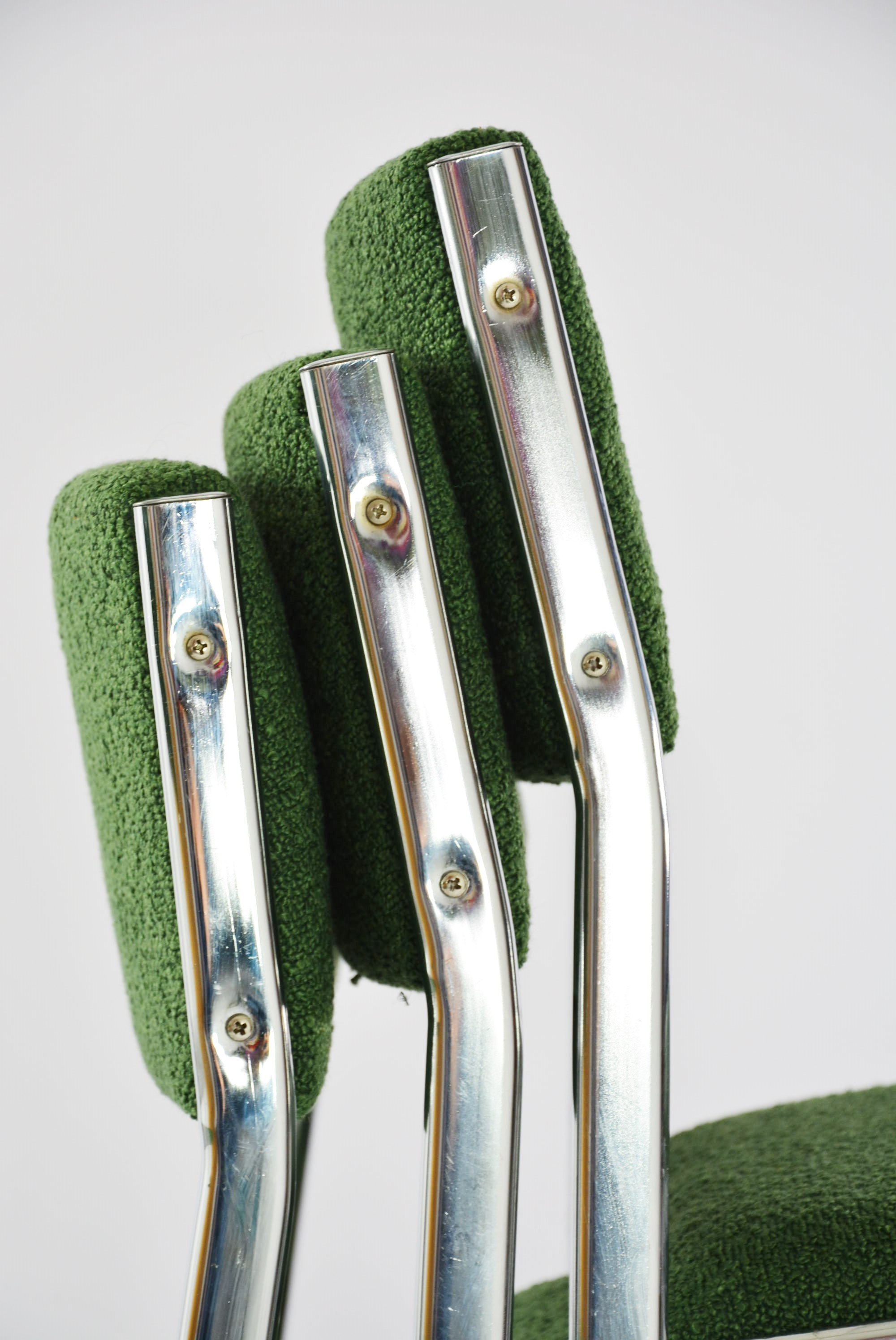 6 Chaises traineau chromés vertes