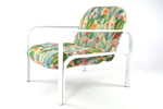 Pièce unique... Fauteuil années 70 à la forme arquée de la structure métallique.