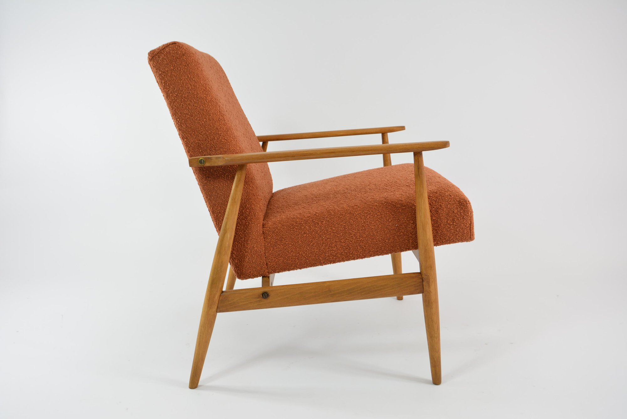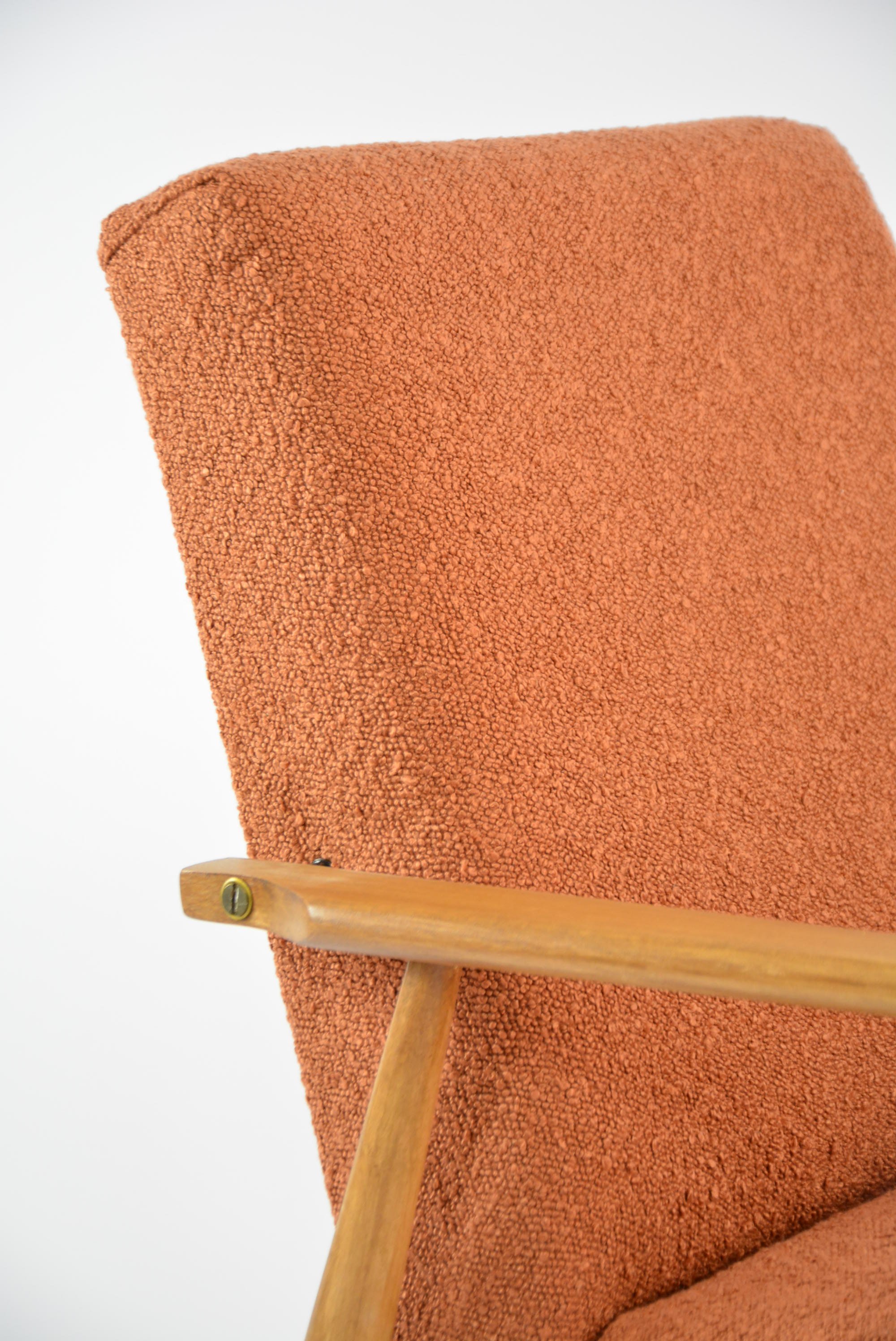 Entièrement restauré. Magnifique tissu bouclette couleur terracotta antitache et résistant.
