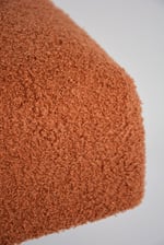 Piétement en compas, l'assise mousses semi-fermes. Tapissé en tissu bouclé terracotta 100% recyclé, antitache et extrêmement résistant.